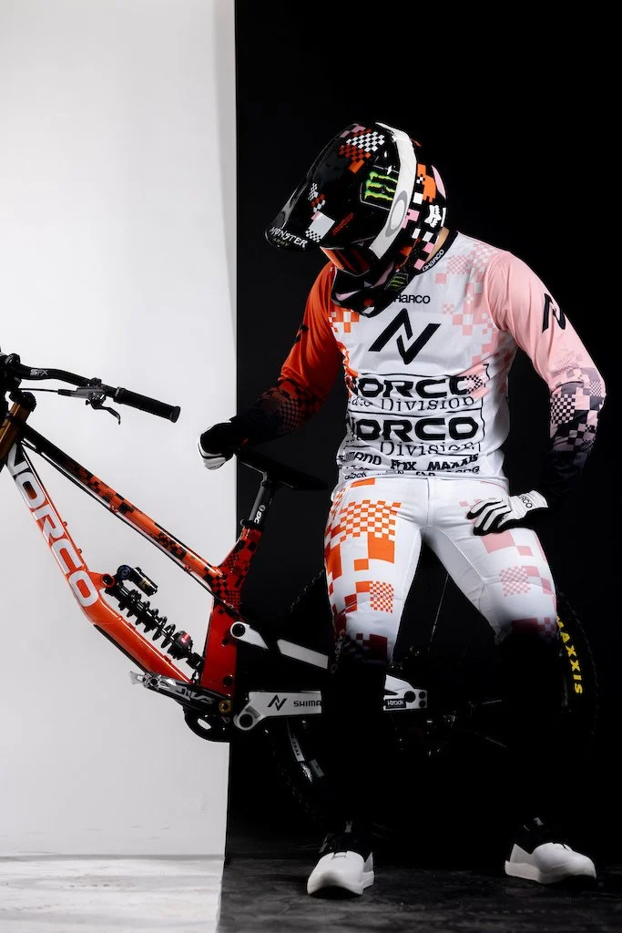 Art Direction for the Norco Race Division team, 2025. This project entailed branding and designing the team as a whole— including athlete kits, bike frames, race pits, the semi-truck, merchandise, and more. Each athlete rides under a signature pattern—a visual identity paired with a distinct colour palette. No two are the same, yet when seen together, the designs blend and form a cohesive unit. It’s a team of distinct personalities and charisma, and together they define Norco Race Division.